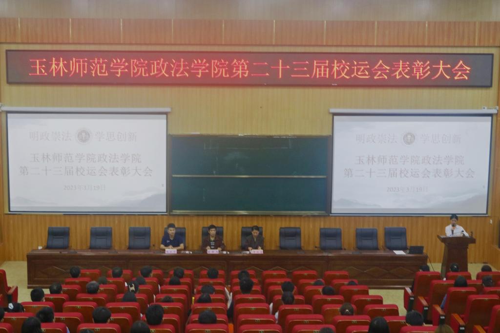 3月19日下午,政法学院于我校东校区明德楼113教室召开第二十三届校运会表彰大会。该院党委书记梁修杰、党委副书记覃艳超、团委书记陈祉宇以及校运会参赛运动员、教练参加此次会议。会议由该院团委学生会主席团成员主持。