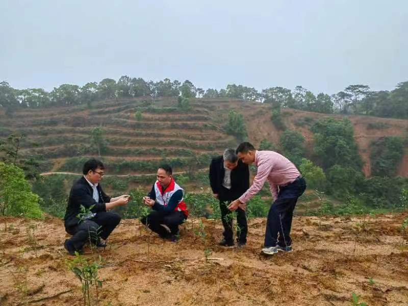 会后,我校一行盘山而上,到凤宁村梯田上查看茶苗生长态势。只见漫山的白茶树新芽已经涌上枝头,长势喜人。这是由我校台湾博士辜文彦担任高级农业科技顾问,帮助广西凤田农业科技有限公司引进并种植的优质白茶品种。辜博士经常利用业余时间到田间地头查看茶苗长势,为农户送点子、送技术、送服务,是广大农户赞誉的“茶博士”。
