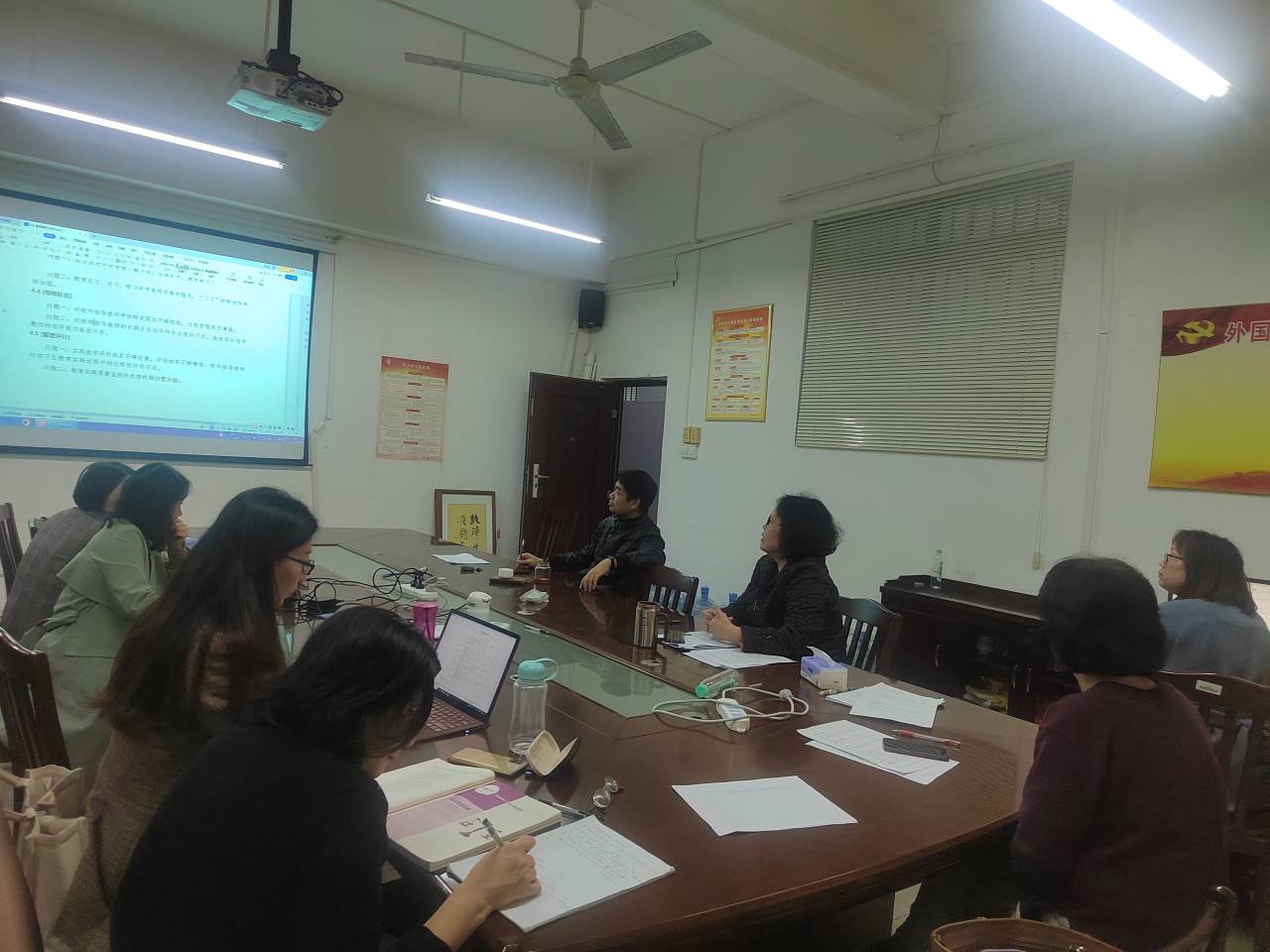 为进一步推进英语专业认证工作,4月6日,外国语学院在东校区厚德楼1-306会议室召开英语专业认证工作推进会议,该院党委书记梁国初,院长沈燕琼,副院长郎晓娟、熊惠,专业负责人以及认证工作小组组长参加会议,会议由该院院长沈燕琼主持。