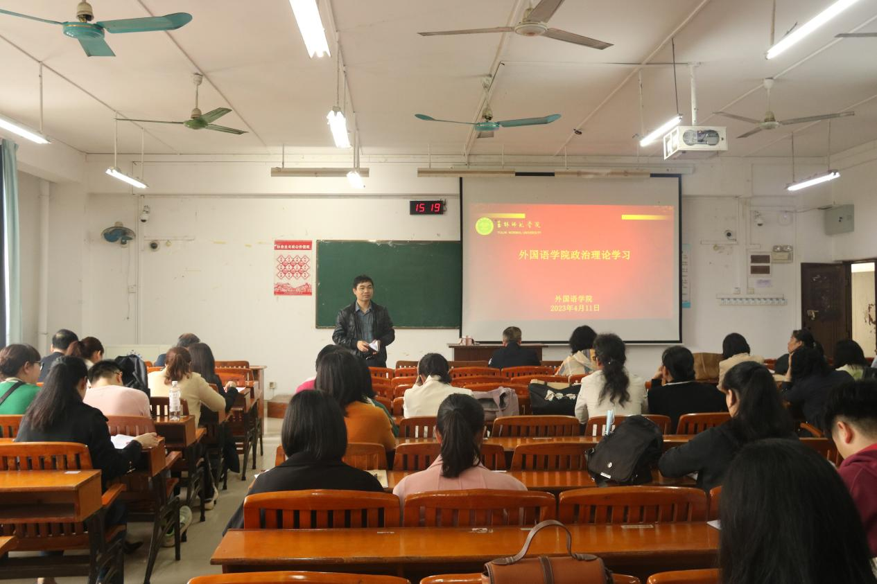 为深入学习贯彻习近平新时代中国特色社会主义思想,全面贯彻落实党的二十大精神,4月11日下午,外国语学院在我校东校区厚德楼1-301教室召开政治理论学习会议,该院全体领导班子及全体教职工参加会议,党委书记梁国初主持会议。