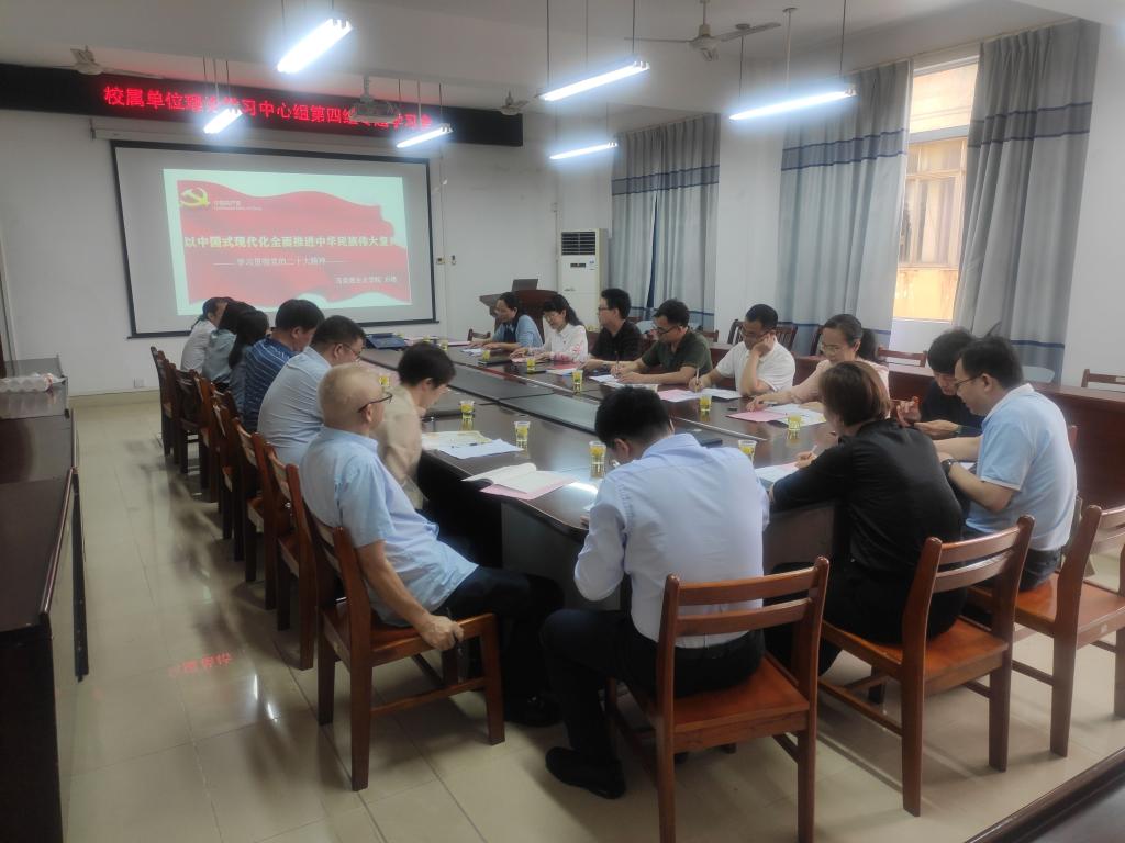 4月18日上午,校属单位理论学习中心组第四组在东校区格物楼BA405会议室召开专题学习会,深入学习习近平总书记关于中国式现代化的重要论述。文学与传媒学院、化食与食品科学学院、生物与制药学院(农学院)以及教育科学学院的处级领导干部参加学习会。会议由理论学习中心组第四组组长邱冠主持。