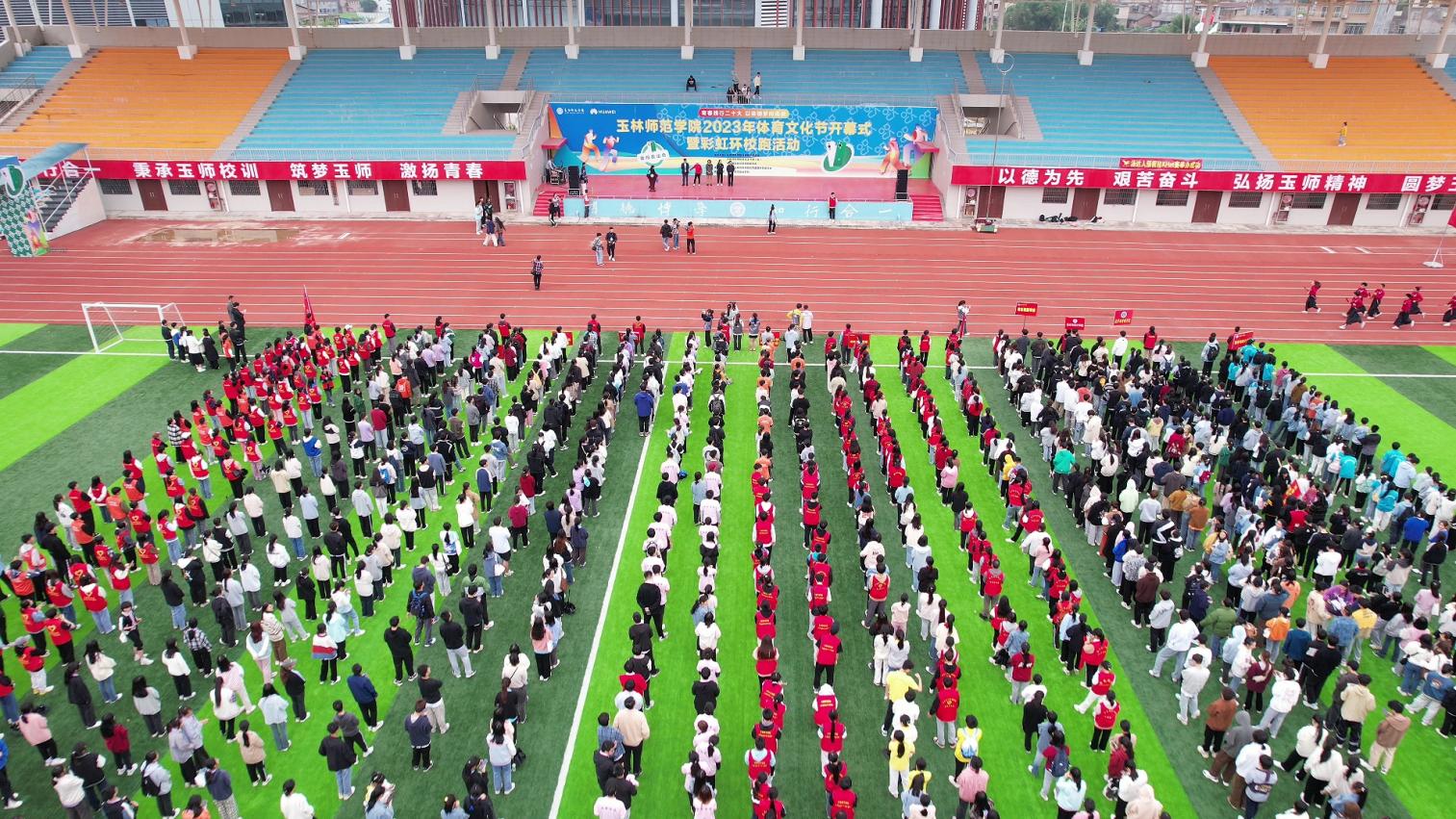 4月25日下午,我校在东校区西田径场举行2023年体育文化节开幕式。