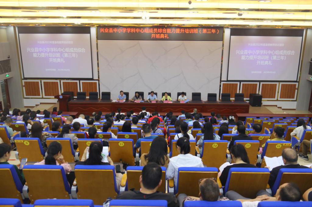 4月24日上午,兴业县中小学学科中心组成员综合能力提升培训班(第三年)在我校开班。开班典礼在东校区新民楼D101室举行,我校党委常委、宣传部部长徐一周,教师教育学院院长梁钊华、副院长田海洋,兴业县教育局副局长黄东,兴业县教师进修学校校长伍祥礼,兴业县教研室主任王健以及培训班全体学员参加本次开班典礼。典礼由梁钊华主持。