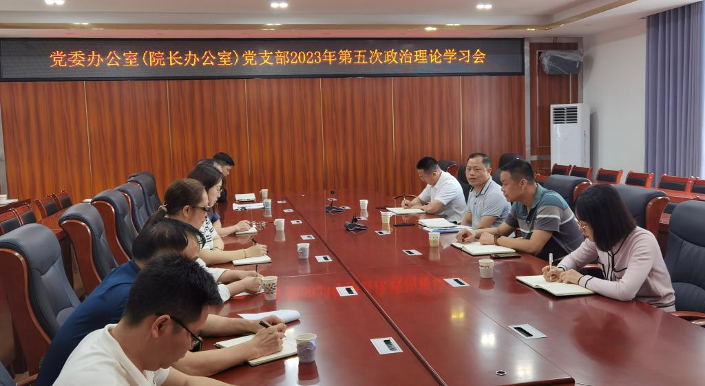 5月8日,党委办公室(院长办公室)党支部在我校东校区新民楼B501会议室召开2023年第五次政治理论学习会。会议由党委办公室(院长办公室)党支部书记唐彰新主持,支部全体党员参加会议。