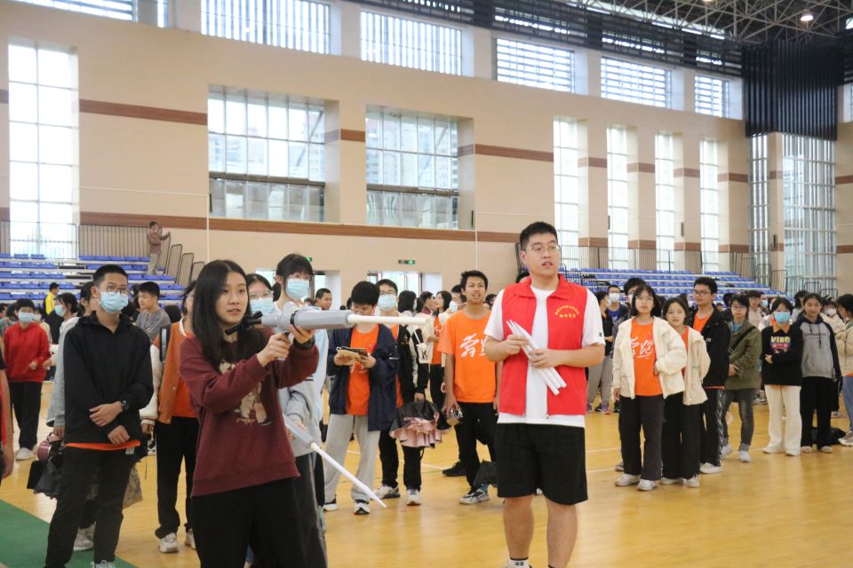 本次科普活动,志愿者们向玉林高级中学学生展演空气炮、气弓箭、水火箭实验,展示遥控小车、智能分类垃圾桶、智能拐杖等科技作品,引来众多好奇的目光。展演过程中,玉高学子与志愿者一起动手制作空气炮,更深切、全方位地感受科技的魅力,沉浸式地体验不一样的科技精彩。在积极动手、动脑的实践中,学子们的思维能力得以锻炼和开拓,自主探究的学习热情得到进一步激发。