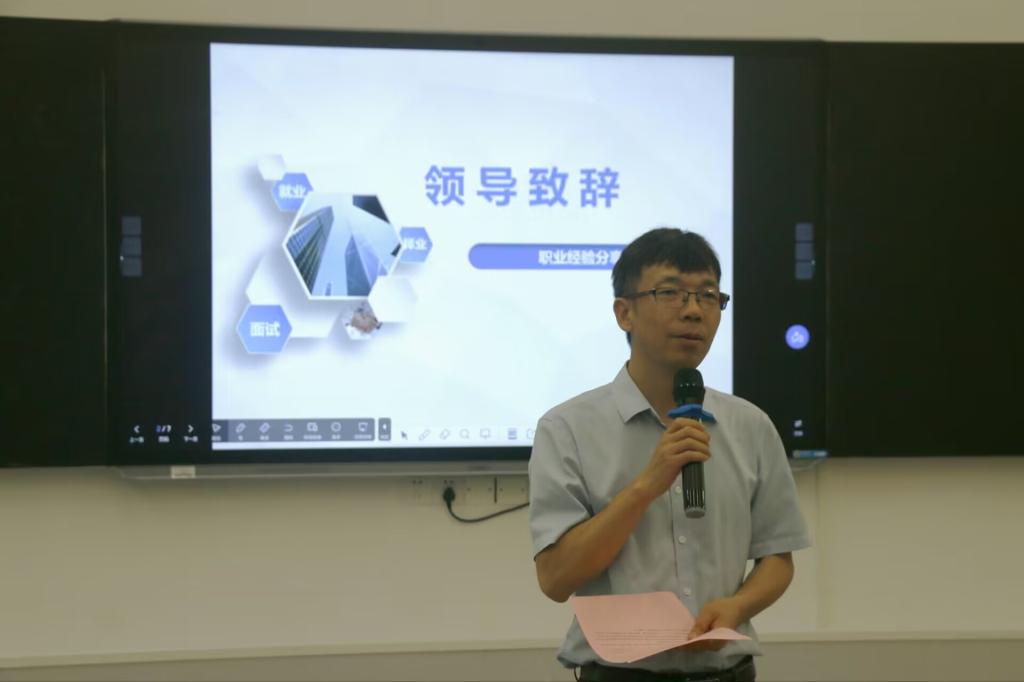 5月19日,生物与制药学院于我校东校区格物楼物理阶梯教室召开优秀校友报告会暨校友企业专场宣讲会。该院副院长贝永建、优秀校友代表、教师代表、2023届部分毕业生参加会议。