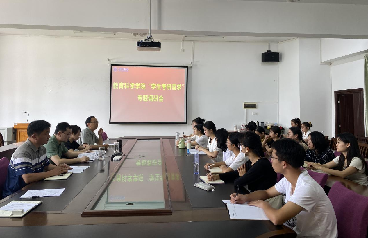 为深入学习贯彻党的二十大精神,落实主题教育要求,精准掌握学生需求,推动“我为师生办实事”规范化、制度化、常态化,在促进学生发展的同时将主题教育影响真正落到实处。5月19日上午,教育科学学院在我校东校区明德楼学院会议室开展“学生考研需求”调研座谈会,学院党政班子领导成员及计划考研的2024届毕业生代表参加调研座谈会。