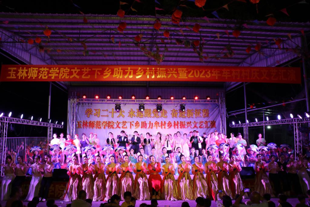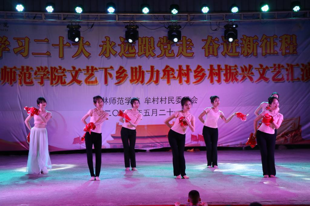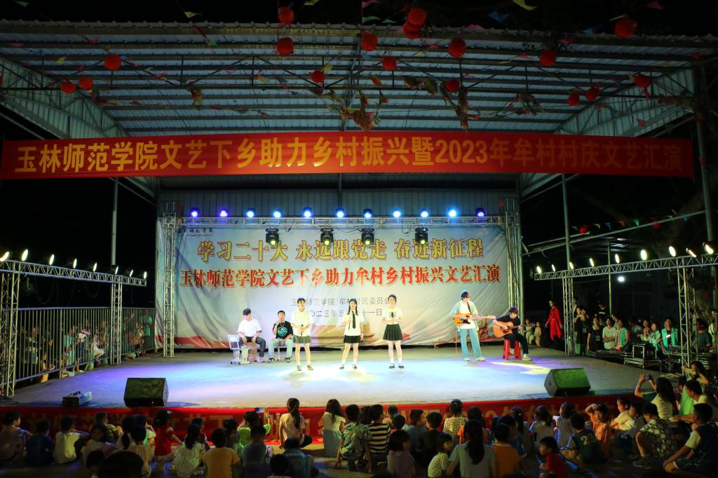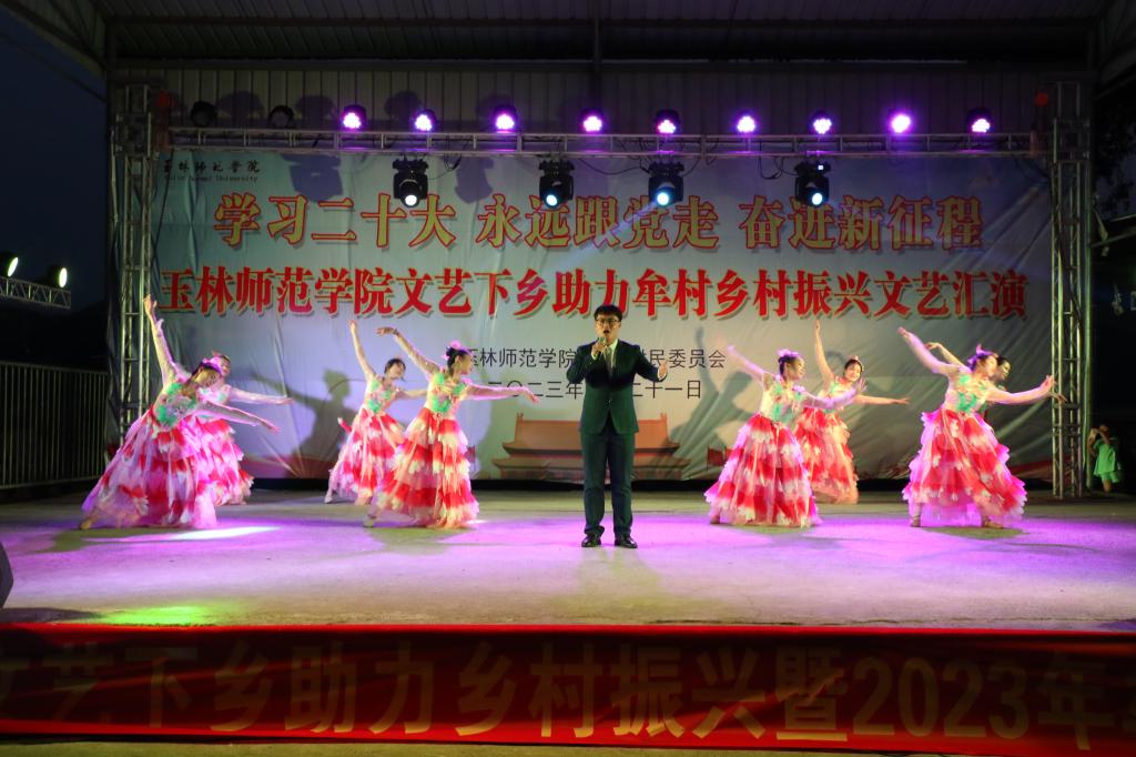为深入开展学习贯彻习近平新时代中国特色社会主义思想主题教育,贯彻落实党的二十大精神,扎实推进文化助力乡村振兴建设,5月21日晚,我校在兴业县龙安镇牟村开展“学习二十大 永远跟党走 奋进新征程”文艺下乡助力乡村振兴暨2023年牟村村庆文艺汇演。学校党委常委、宣传部部长徐一周以及相关部门负责人,龙安镇党委副书记,牟村党支部书记、第一驻村书记等领导出席晚会,牟村群众、学生等共同观看演出。