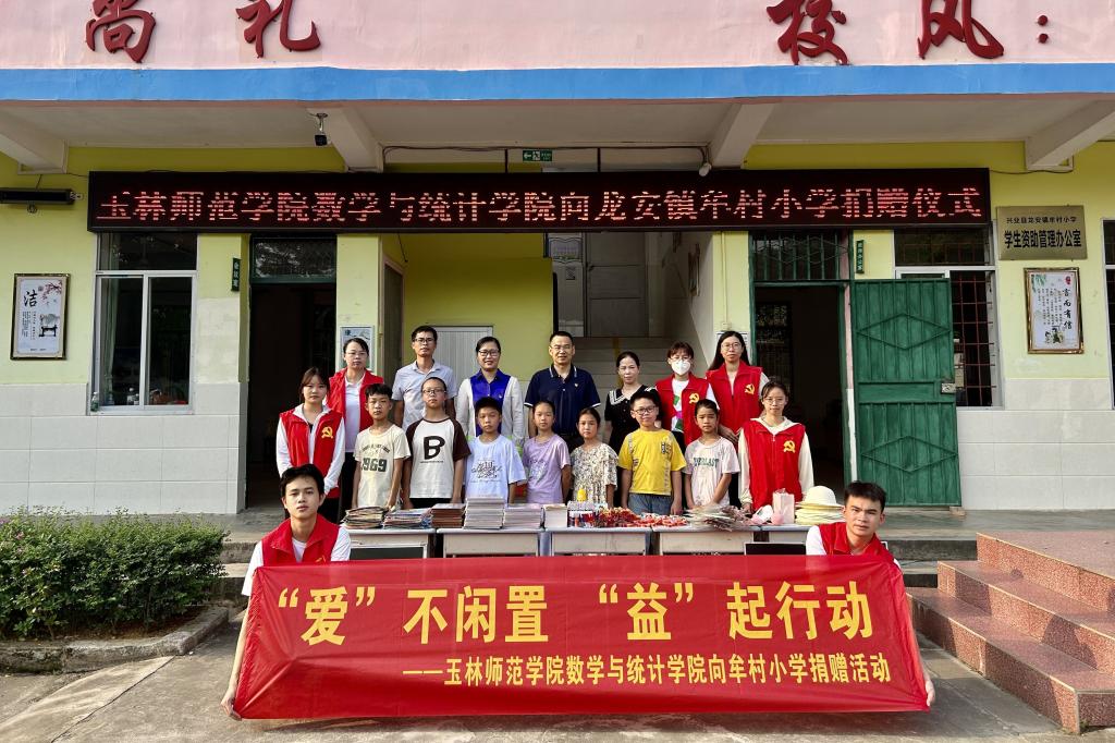 点燃奋斗梦想,激励乡村自信。该院前往龙安镇牟村小学举办捐赠仪式,共捐赠小黑板、文具、益智教具600余件。这些物资不仅改善牟村小学孩子们的学习条件,也寄予着数统师生对孩子们的鼓励与希望。未来的路上,让我们将“爱”不闲置,以爱育爱,“益”起行动,助推社会对乡村教育的关注,共育祖国的希望与未来!