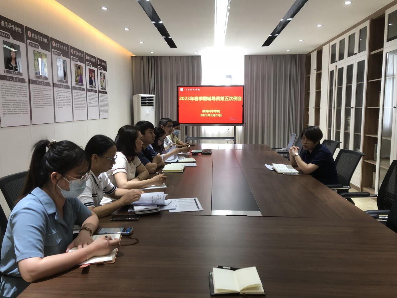 5月23日上午,教育科学学院于我校东校区明德楼408会议室召开2023年春季期第五次辅导员工作例会。本次会议由该院党委副书记李尚芳主持,全体辅导员参加会议。