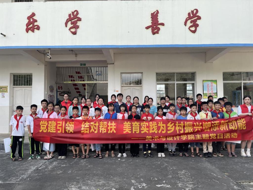 为了进一步将学习贯彻习近平新时代中国特色社会主义思想主题教育走深走实,助力乡村振兴。5月26日,美术与设计学院党委书记黄培英和学生第四党支部书记周志强带领该院学生党员以及志愿者前往兴业县龙安镇牟村小学开展“党建引领 结对帮扶 美育实践为乡村振兴增添新动能”主题党日活动。