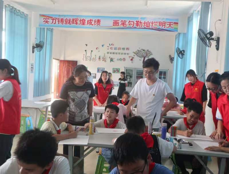 志愿者们给孩子们带来了一堂生动活泼的艺术课堂支教活动,在授课过程中,学生党员志愿者们对孩子们有针对性的进行美术绘画指导。通过开展针对性支教活动,进一步发挥学生党员的先锋模范作用,实现每一位被帮扶学生学有所教、惑有所解、爱有所依、困有所帮,让更多乡村学童共享优质美育教育资源。