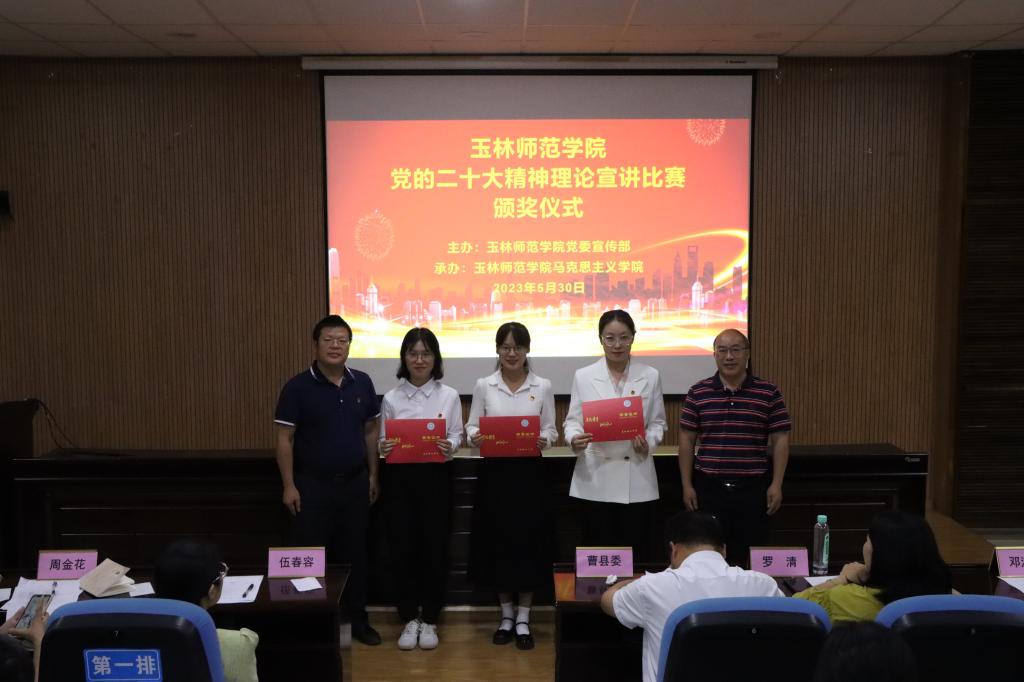 现场12名参赛选手从报告解读、壮美广西、教育实践等方面宣讲党的二十大精神,在比赛中充分展现当代青年学生听党话、跟党走,充满朝气活力、自信自强的一面。此次比赛共评出一等奖2名、二等奖3名、三等奖7名。