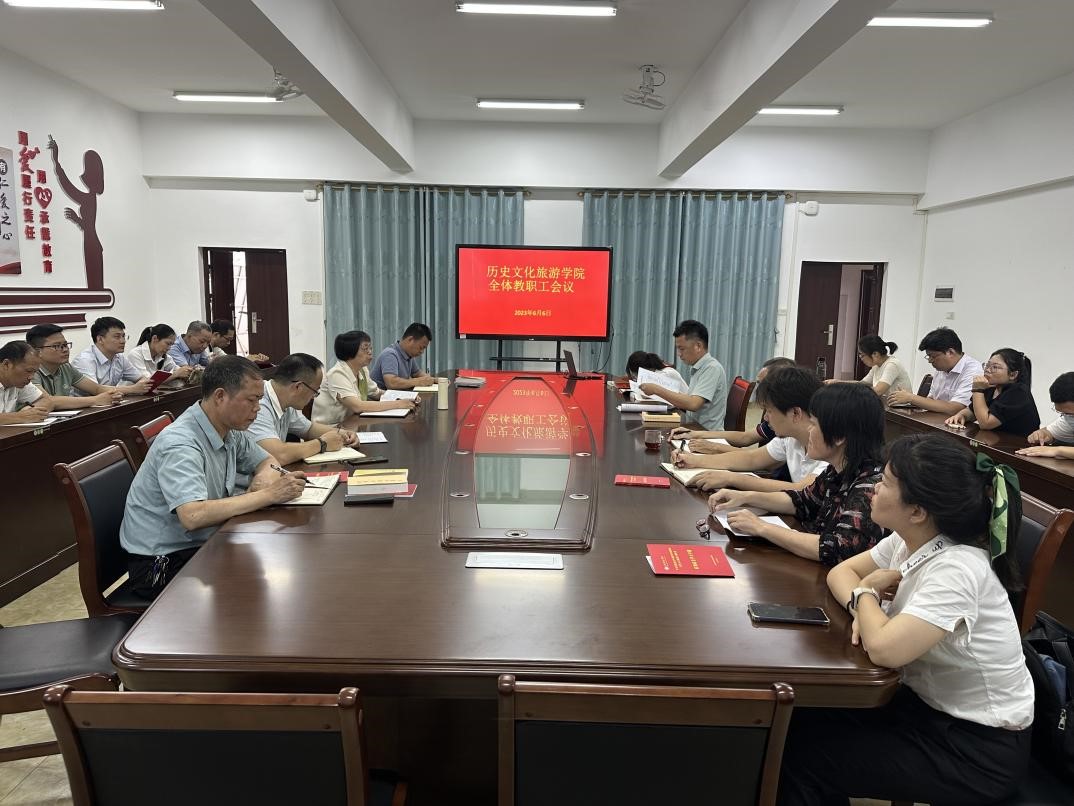 6月6日,历史文化旅游学院在我校东校区至善楼509会议室召开全体教职工大会,该院全体在校教职工参会,会议由该院院长刘小云主持。
