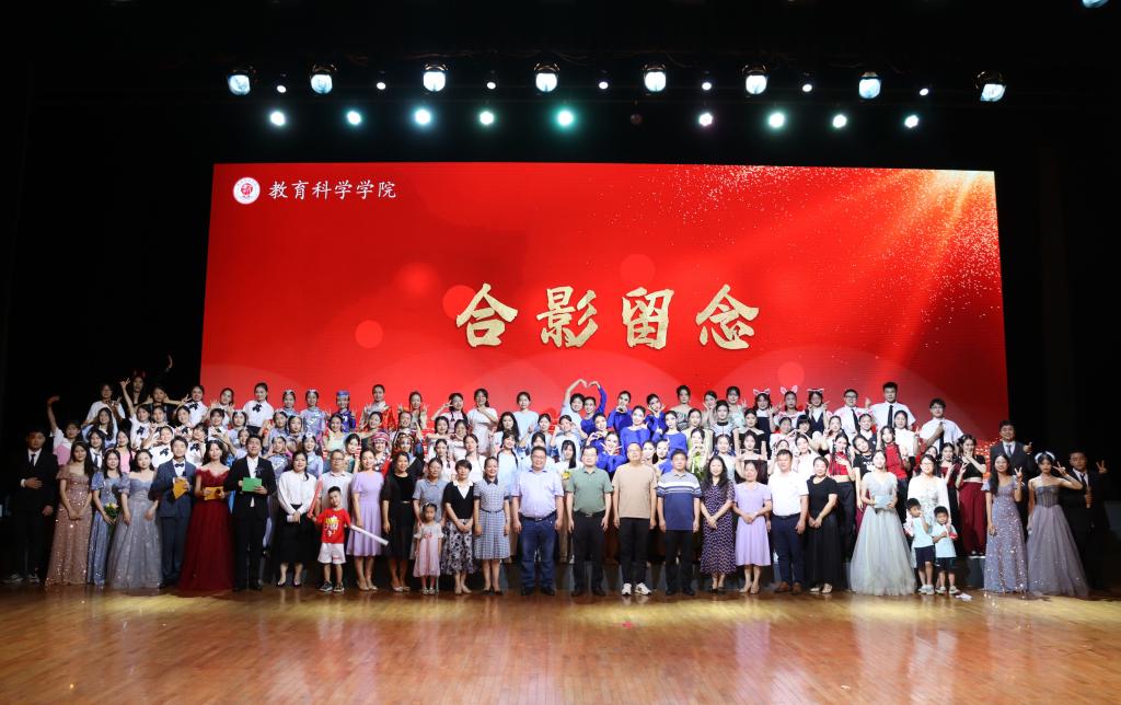 最后,晚会在歌曲《青春回忆录》大合唱中落下帷幕,学校领导及该院领导、教师与表演人员进行合影留念。至此,“奋进百年新征程,青春逐梦向未来”——玉林师范学院教育科学学院欢送2023届毕业生文艺晚会圆满结束。