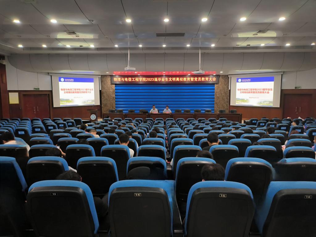 6月13日下午,物理与电信工程学院于我校东校区学术报告厅召开2023届毕业生文明离校教育暨党员教育大会。该院党委书记廉文武,副院长罗志荣,辅导员以及2023届毕业生参加会议。