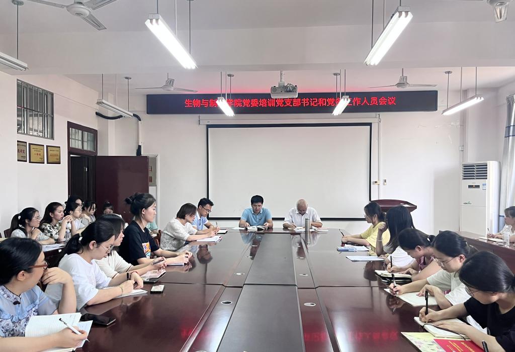 6月14日,生物与制药学院于我校东校区格物楼BA405会议室召开2023年春季期党支部书记、党务工作者培训会。该院党委副书记兼副院长蒋德旗、各党支部书记、支部委员和党务工作者参加会议,会议由该院党委专职组织员赖兴珲主持。