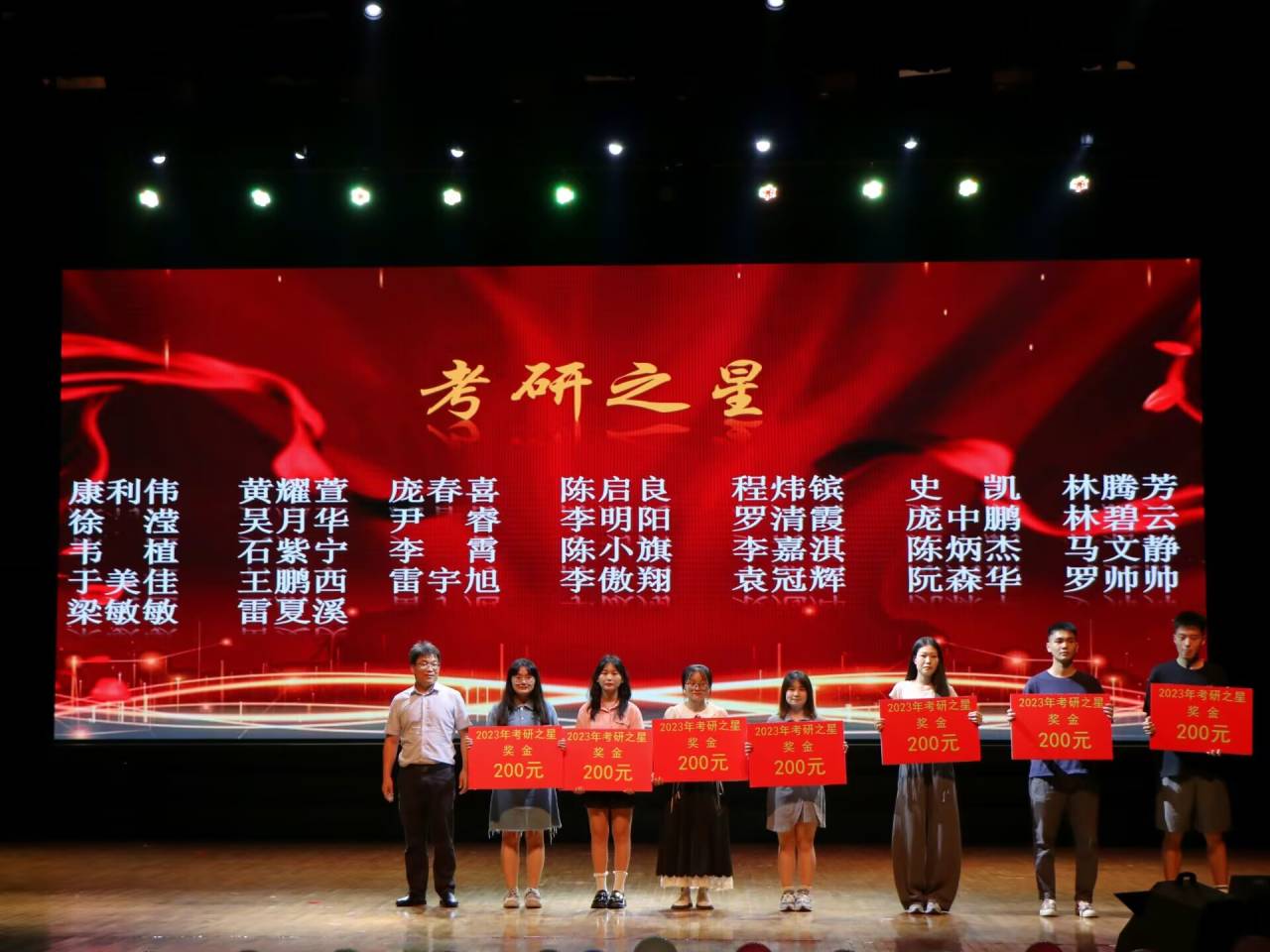 晚会在师生的祝福短片中拉开帷幕,一句句真诚的祝福,一张张真挚的笑脸,在演示厅里一幕幕展现,致以毕业生美好的祝愿与殷切的期盼。晚会上,该院领导班子向圆满完成学业的2023届毕业生致以衷心的祝贺,对取得优异成绩的区级优秀毕业生及2023届“考研之星”颁奖表彰,希望毕业生们再接再厉,在新的人生旅程中追风赶月莫停留,劈风斩浪,一往无前。
