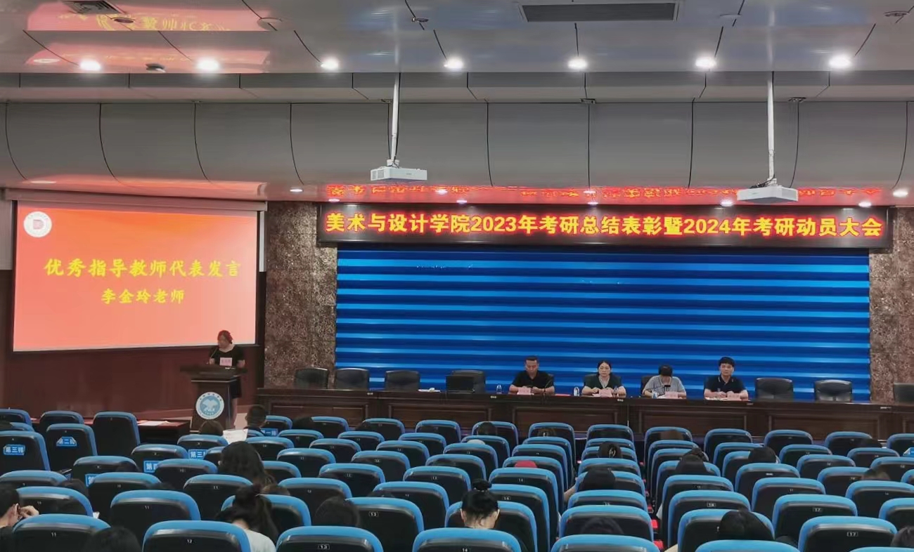 为进一步加强学风建设、培树考研先进典型,凝聚榜样力量,切实提高学生研究生考取率,6月16日上午,美术与设计学院于我校东校区学术报告厅召开2023年考研总结表彰暨2024年考研动员大会。学院党委书记黄培英、副书记严耀燕、教师代表、辅导员、各年级学生代表参加,会议由严耀燕主持。