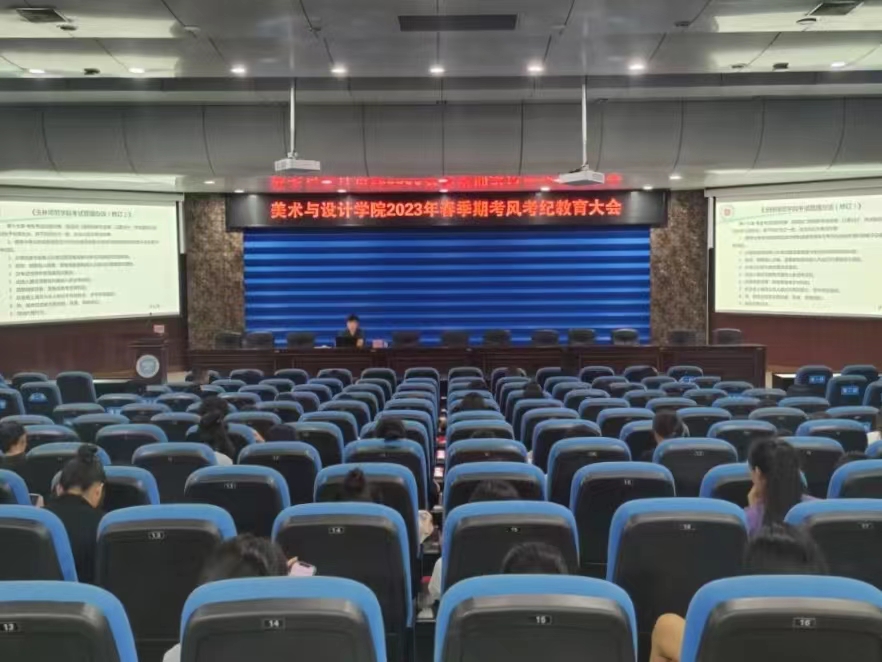 为进一步加强考风建设,严肃考纪,同时营造良好的学习氛围,6月16日,美术与设计学院于我校东校区学术报告厅召开考风考纪教育主题大会,本次会议由该院党委副书记严耀燕主持,辅导员周志强主讲。