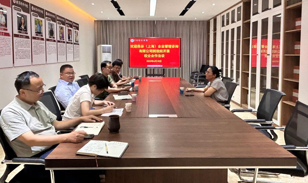 6月18日下午,教育科学学院与邑谷(上海)企业管理咨询有限公司在东校区明德楼408会议室开展校企合作洽谈会。学院领导班子成员、邑谷(上海)企业管理咨询有限公司负责人卞光芹参加本次洽谈会。