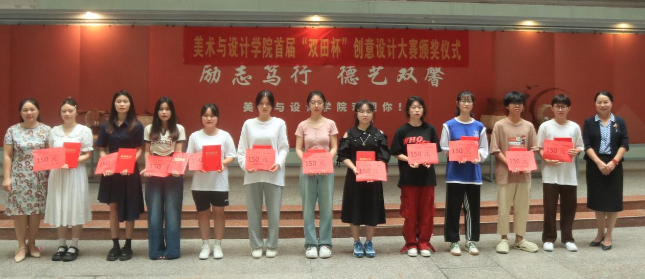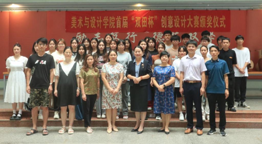 近日,美术与设计学院在我校东校区综合实训楼一楼大厅举行首届“双田杯”创意设计大赛颁奖仪式。参加此次大赛颁奖仪式的有广西双田家居用品有限公司董事长朱国琳、该院党委书记黄培英、副院长邱冬梅、学院专业教师及学生等。
