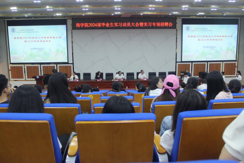 6月20日,商学院于我校东校区新民楼D101会议室开展2023届毕业典礼暨2024届考研和实习动员大会。该院领导班子,组织员、辅导员、班主任、2023届毕业生及2024届毕业生参加会议。会议由党委副书记龙强主持。
