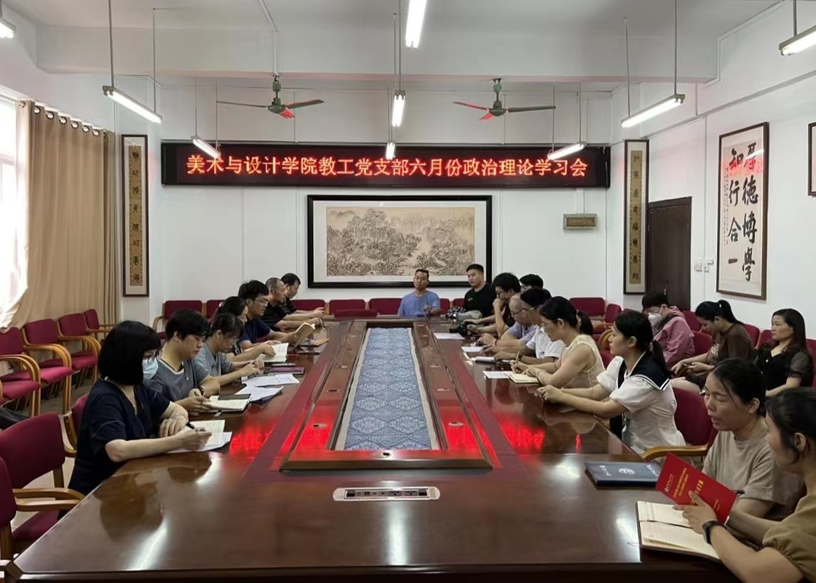 6月20日下午,美术与设计学院教工党支部于我校东校区博学楼3-407会议室召开6月份政治理论学习会。学院教工党支部全体党员参加会议,会议由教工党支部书记满瑜琳主持。