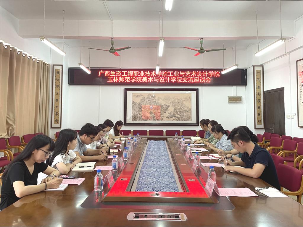 7月4日上午,广西生态工程职业技术学院工业与艺术设计学院党总支副书记李蕾鲜一行莅临美术与设计学院交流学习,并于我校东校区博学楼3-407会议室召开学习交流座谈会,该院党委副书记严耀燕、副处级专职组织员李婷、辅导员和学生代表参加座谈会。