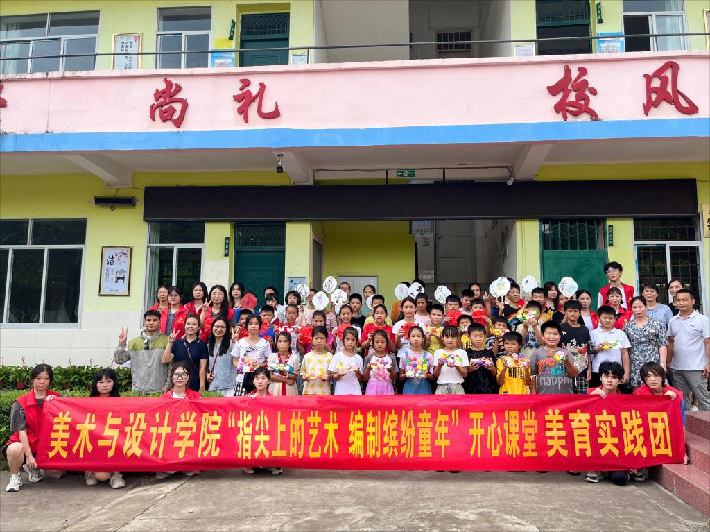 为深入学习贯彻习近平新时代中国特色社会主义思想和党的二十大精神,充分展示美术与设计学院专业特色和理论体系的指导实践作用。7月7日上午,该院组织“指尖上的艺术 编制缤纷童年”开心课堂美育实践团赴兴业县龙安镇牟村小学开展暑期社会实践活动。牟村驻村第一书记李淼玥、村支书关培,该院党委副书记严耀燕、辅导员代表参加本次实践活动。
