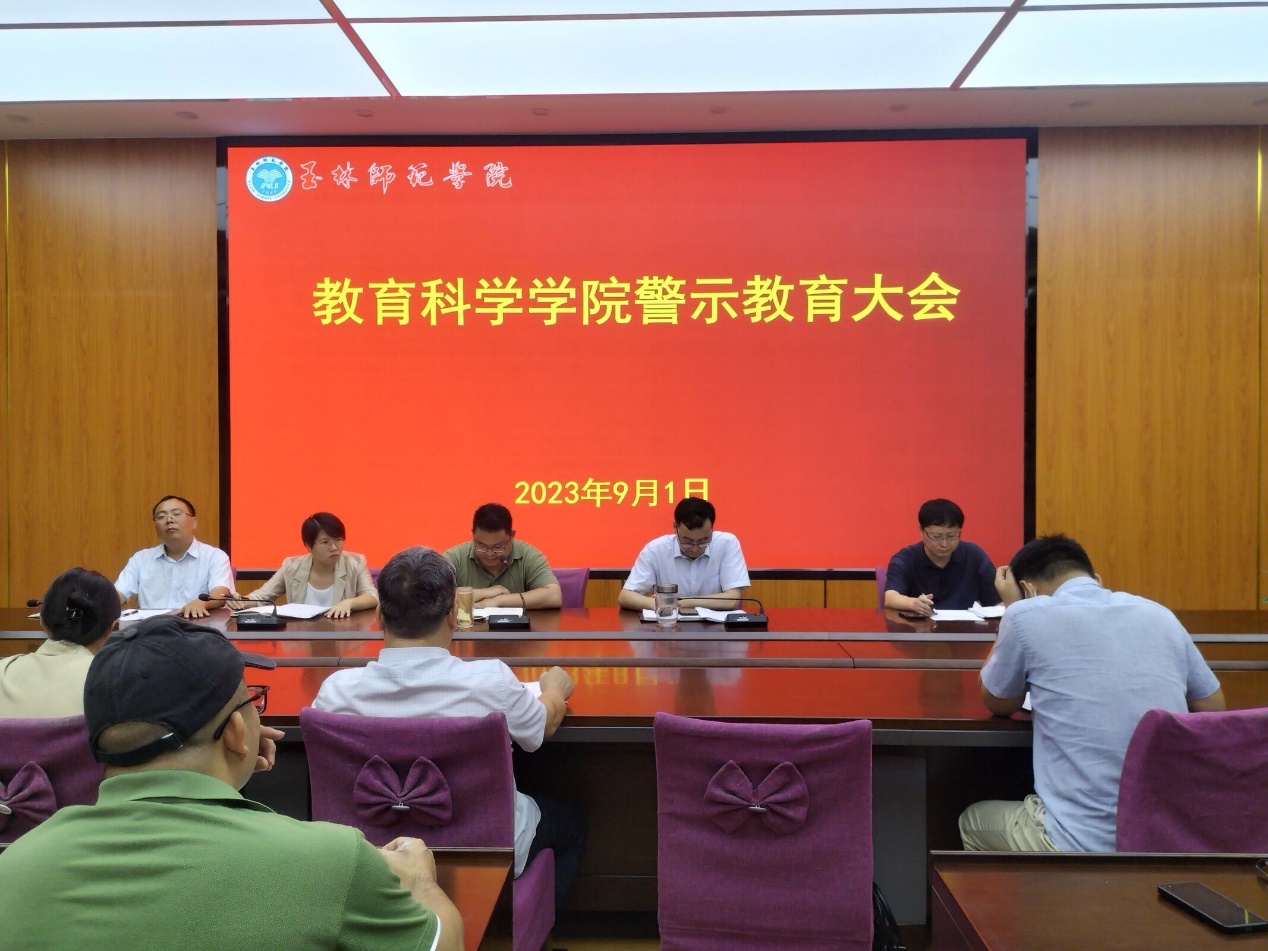 9月1日,教育科学学院于我校东校区明德楼学院会议室召开警示教育大会,学院领导班子成员,全体教职工参加此次会议,会议由学院党委书记崔海波主持。