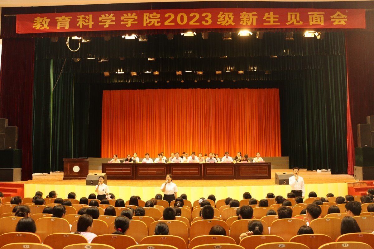 为帮助2023级新生完成角色转变,以昂扬精神状态迎接大学生活,9月3日上午,教育科学学院在我校东校区演示厅召开2023级新生见面会,该院领导班子成员,系主任,2023级新生班主任,教师代表以及全体新生参加此次会议。