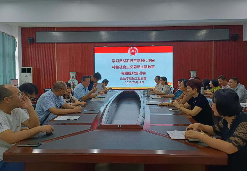 9月12日上午,政法学院教工党支部于我校东校区明德楼508会议室召开学习贯彻习近平新时代中国特色社会主义思想主题教育专题组织生活会。政法学院全体教工党员参加此次会议,学院党委领导班子成员以普通党员身份参加了专题组织生活会。会议由支部书记袁名泽主持。