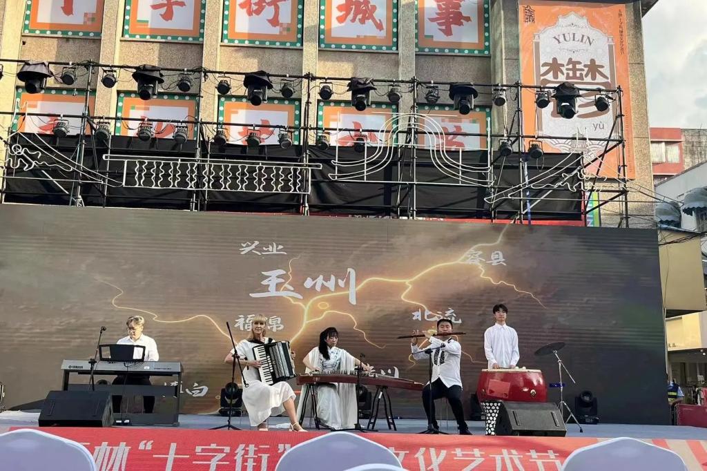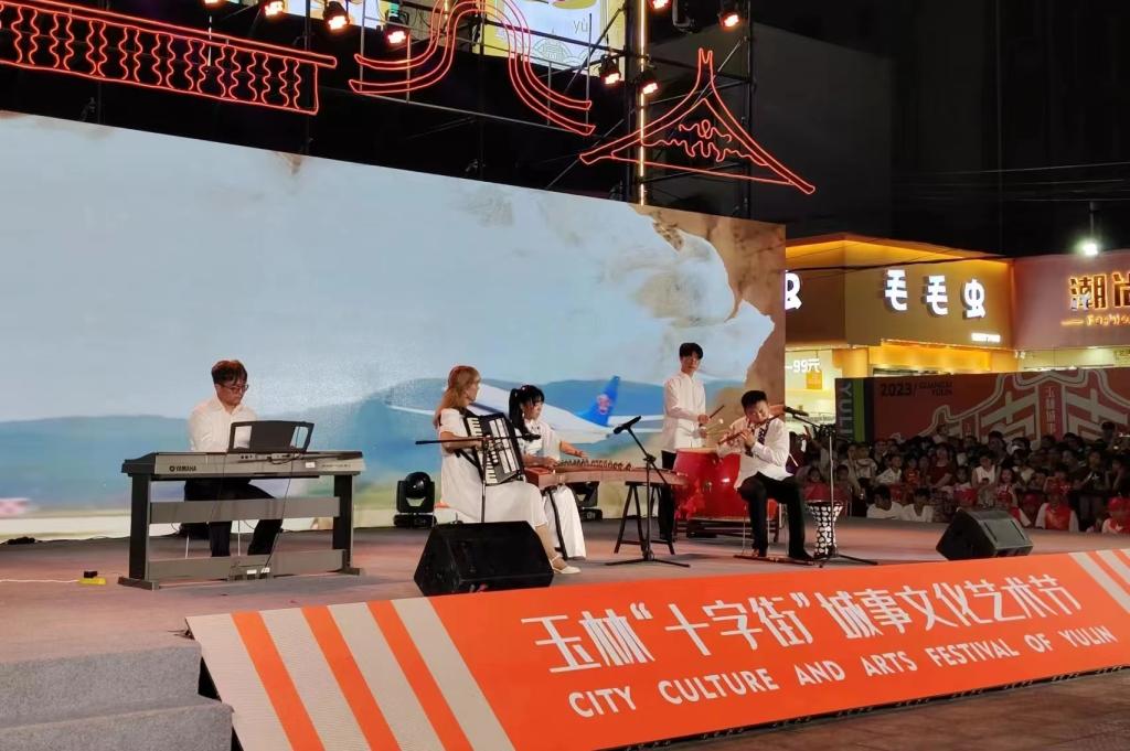 9月19日晚,玉林市隆重举办玉林“十字街”城事文化艺术节开幕式,音乐舞蹈学院教师李洪磊、马丽、李辉、柳德米拉、李刚参加开幕式并表演节目乐器五重奏《丝路画卷》。
