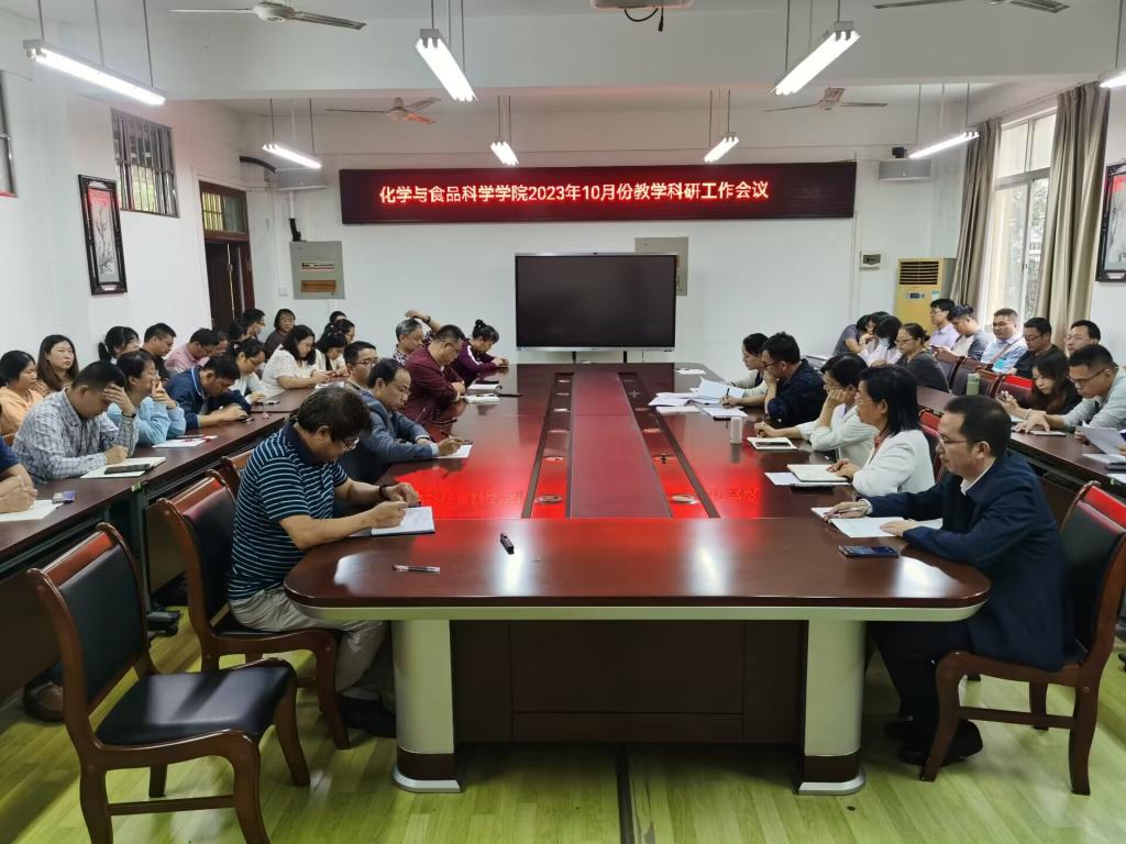10月10日下午,化学与食品科学学院于我校东校区BA321学院会议室召开2023年10月份教学科研工作会议。本次会议由该院党委书记罗志辉主持,学院全体教职工参加会议。