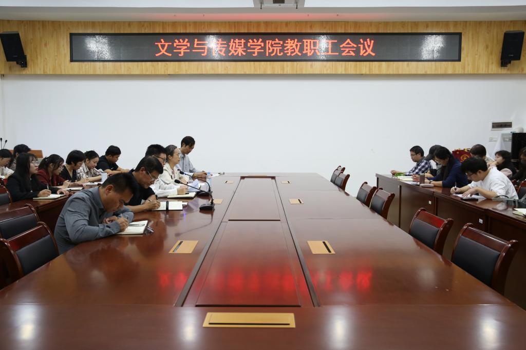 10月10日下午,文学与传媒学院于我校东校区至善楼309会议室召开全体教职工会议,学院领导班子成员、全体教职工参加会议,会议由该院党委书记邱冠主持。