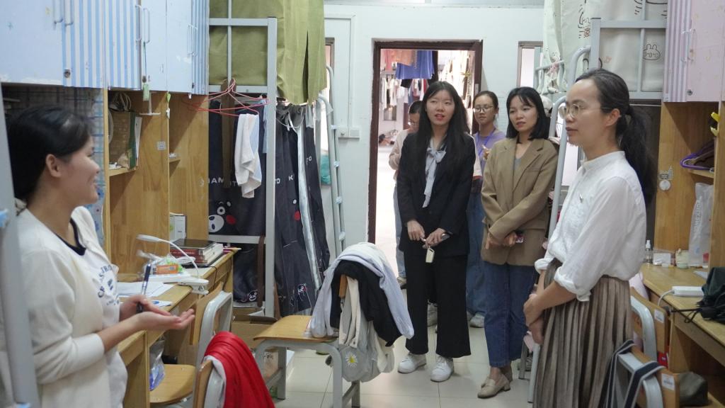 此次走访重点检查宿舍的卫生状况、排查安全隐患,并了解学生日常的生活情况。在走访宿舍期间,梁丹及随行老师和学生们亲切交流。梁丹询问了解学生的实习情况,叮嘱学生要注意交通安全,遵守学校相关的规章制度。同时,她提醒学生们严格遵守住宿管理规定,不要使用大功率电器,保管好自身的贵重物品,保持宿舍内务的整洁。在学青会到来之际,梁丹还贴心地询问学青会志愿者的有关工作,鼓励志愿者们要做好本职工作,展现该院学生优良的精神风貌。此外,梁丹还关心学生实践周的相关安排,并提醒学生们在外出实践期间要注意人身安全,顺利完成实践任务。