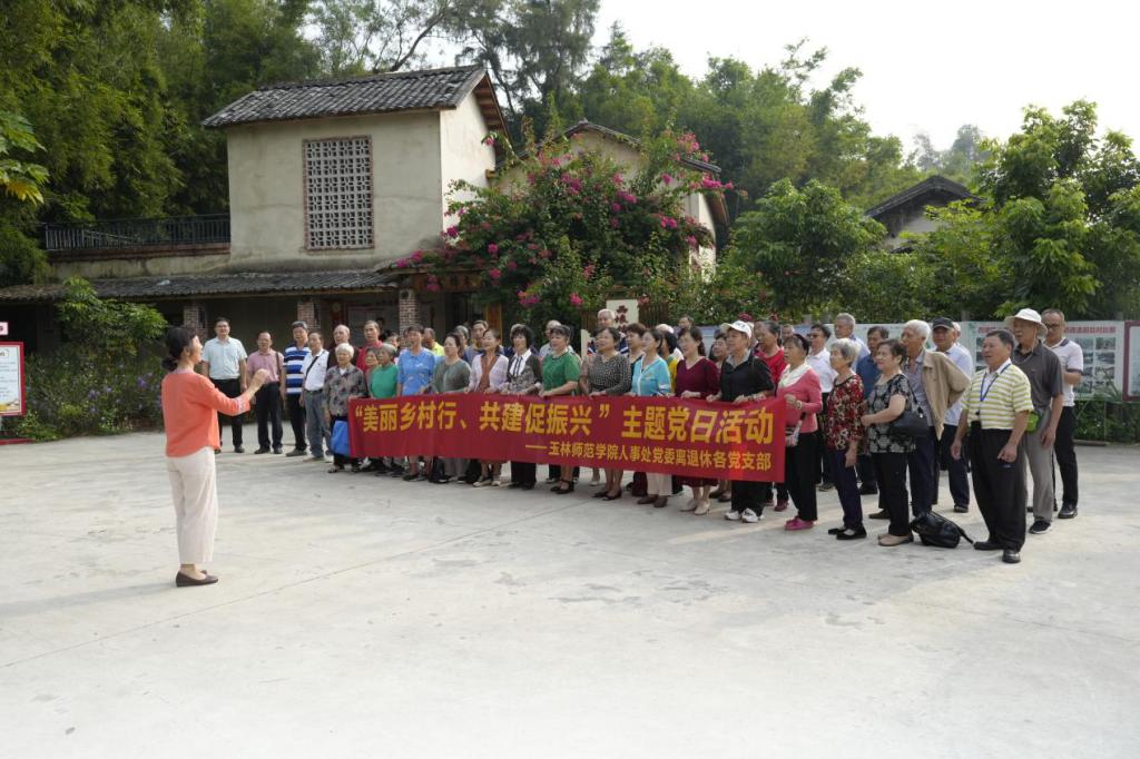 10月27日上午,人事处党委组织离退休五个支部赴北流市西埌镇木棉村开展“美丽乡村行、共建促振兴”主题党日活动。