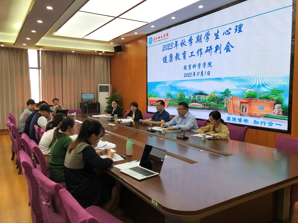 11月1日,教育科学学院于我校东校区明德楼310学院会议室召开2023年秋季期心理健康工作研判会,该院领导班子成员,辅导员以及各班班主任参加此次会议。