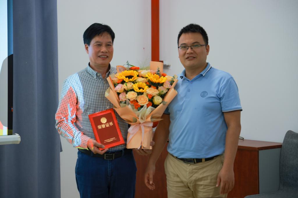 最后,处长杨潇为黄海飞送上鲜花和颁发荣誉证书,并合影留念。