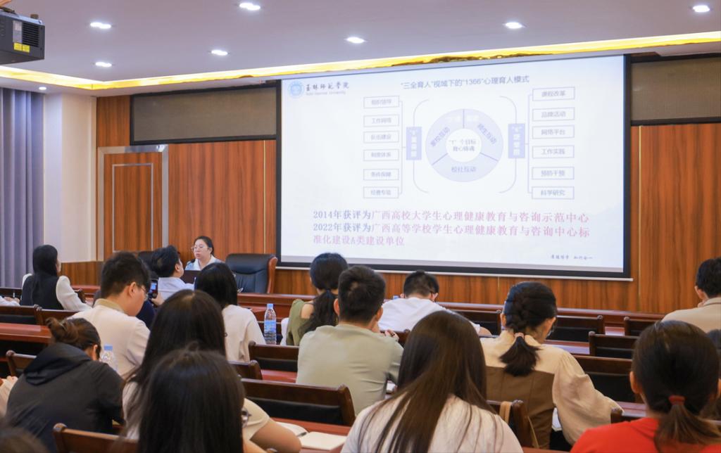 为进一步增强学校心理健康育人队伍的专业技能,10月27日下午,学校心理健康教育与咨询中心在我校东校区新民楼B515会议室以专题讲座的形式开展心理健康教育业务工作培训,学生工作处副处长李国庆出席培训会。培训由心理健康教育与咨询中心主任吕学巧主讲,以《基于“1366”心理育人模式,做好心理健康教育工作》为题,从“1366”心理育人模式介绍、心理健康教育工作主要任务、心理健康教育工作时间表、心理工作基本原则及注意事项四个方面进行详细讲解,旨在提高辅导员心理育人工作水平,对提升我校学生心理健康教育工作质量具有积极作用。