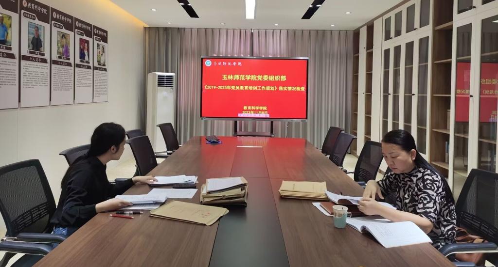 11月8日下午,学校党委组织部副部长区茵带队到教育科学学院开展2019-2023年党员教育培训工作规划落实情况检查工作,检查工作于我校东校区明德楼408会议室开展,该院党委书记崔海波,团委书记,辅导员参加此次检查工作。