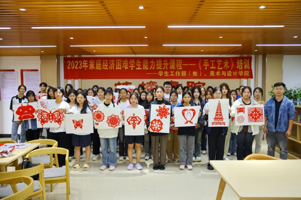 为提高我校家庭经济困难学生审美和人文素养,助力学生全方位成长成才,11月12日,学校学生资助管理中心联合美术与设计学院在我校东校区梅园社区挂榜书院开展2023年家庭经济困难学生能力提升课程(第十期)——《手工艺术》培训。培训课程分为两个专题:剪纸艺术和芒编艺术,分别由美术与设计学院学生王湘和班展源主讲,110余名家庭经济困难学生分两批次参加培训,学生资助管理中心老师、美设学院辅导员主持培训。