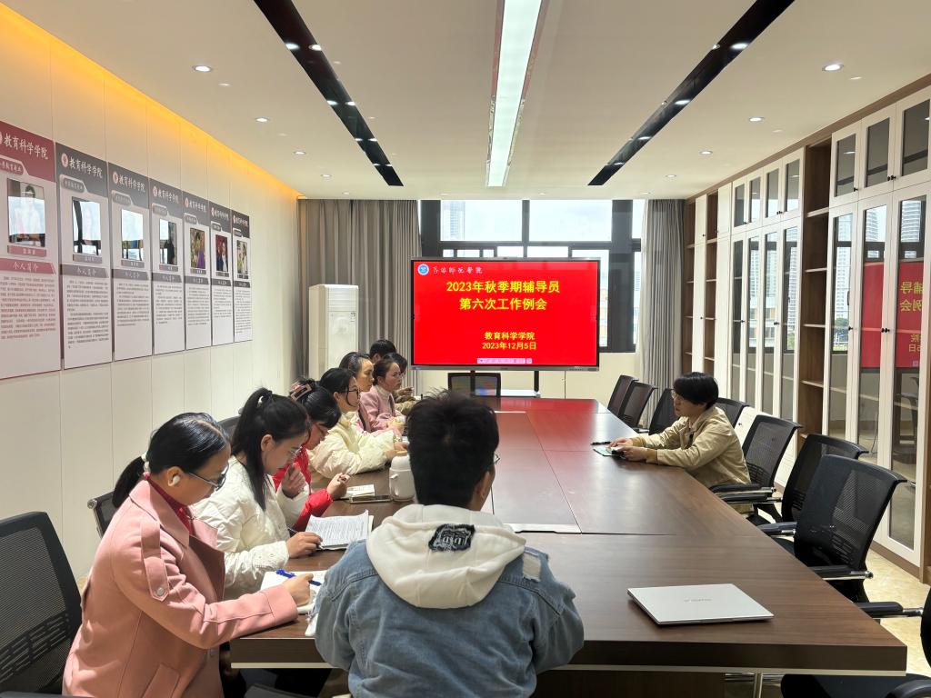 12月5日,教育科学学院在我校东校区明德楼410会议室召开2023年秋季期辅导员第六次工作例会,该院党委副书记李尚芳以及全体辅导员参加此次会议。
