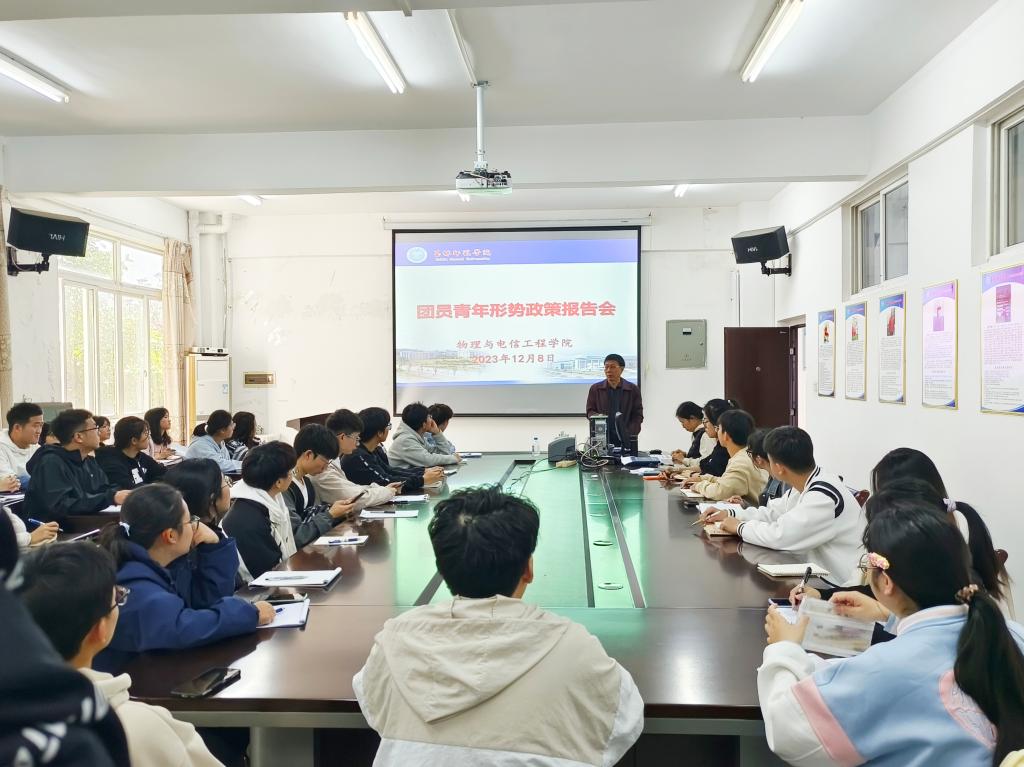 12月8日,物理与电信工程学院在我校东校区物电楼BG221会议室召开团员青年形势政策报告会。该院党委书记陈铁军,辅导员以及第五届团委学生会全体成员参加本次会议。报告会由陈铁军主讲。