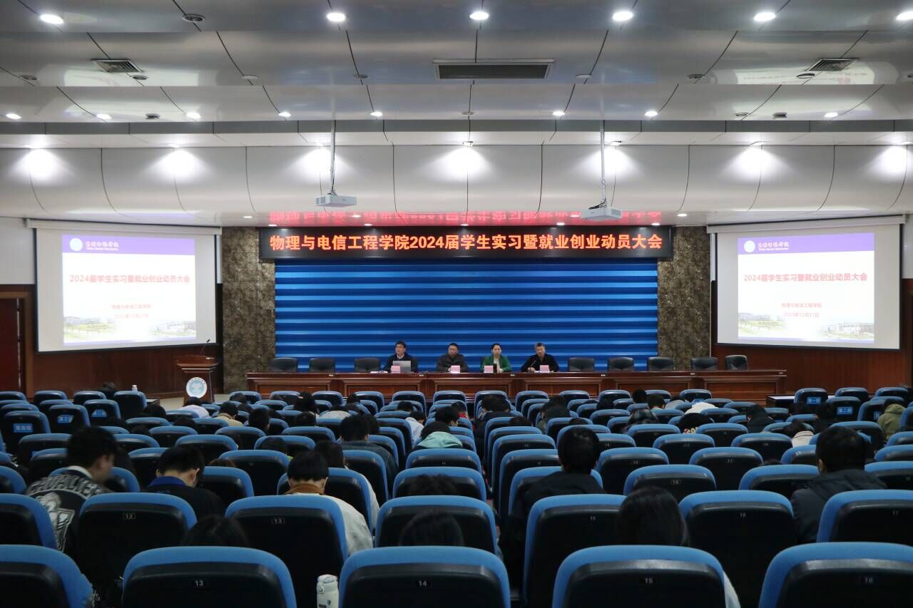 为引导学生做好实习就业的各项准备,推进实习就业工作的有序开展,12月27日上午,物理与电信工程学院于我校东校区学术报告厅召开2024届学生实习暨就业创业动员大会。该院党委书记陈铁军,党委副书记兼副院长覃艳超,副院长罗志荣、田欢欢出席会议,毕业年级辅导员、班主任,2024届学生参加会议。会议由田欢欢主持。