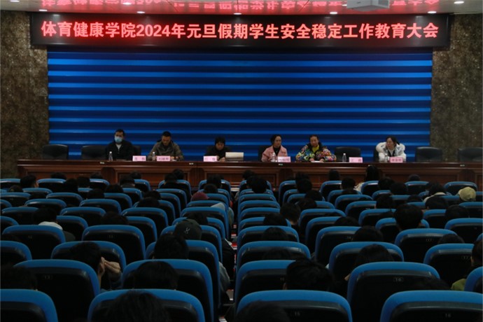 为提高学生元旦假期安全意识,12月27日下午,体育健康学院于我校东校区学术报告厅召开元旦假期安全稳定工作教育大会。该院党委副书记江俊、全体辅导员及该院全体学生参加会议。本次大会由江俊主持。