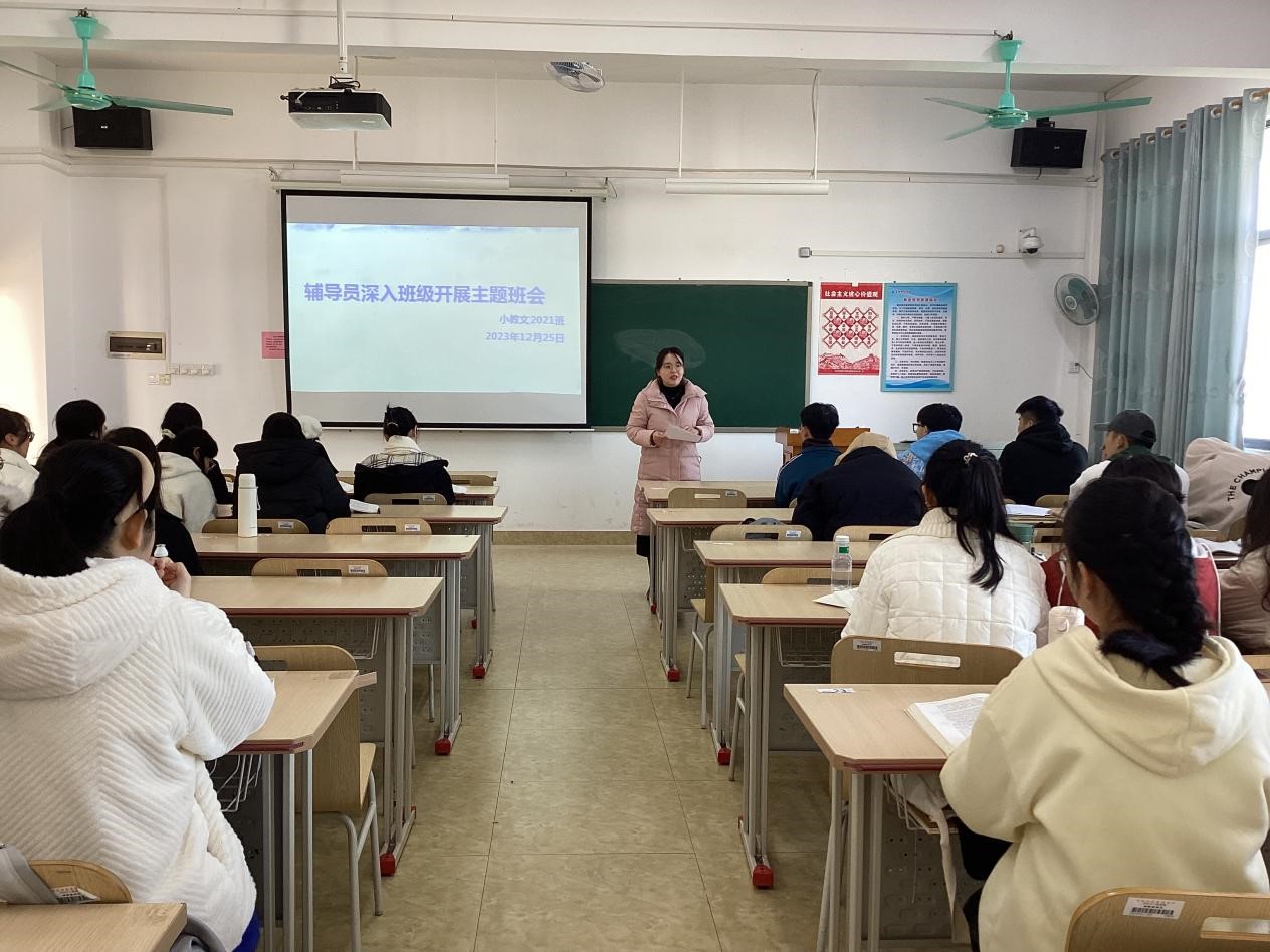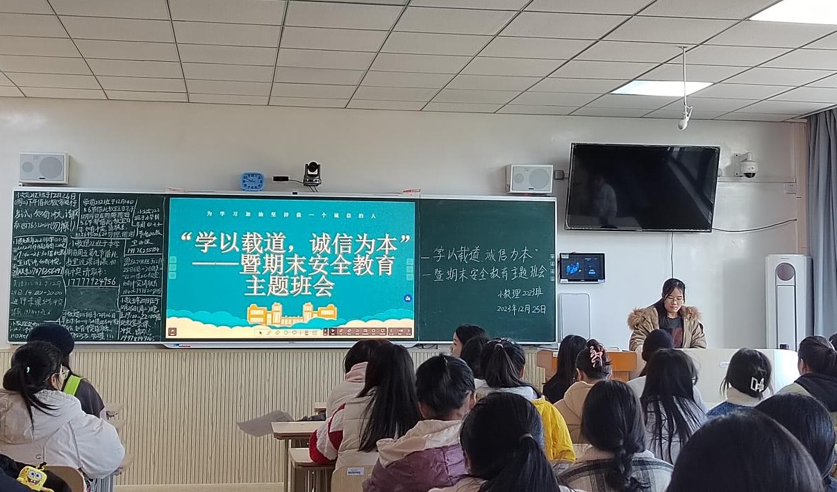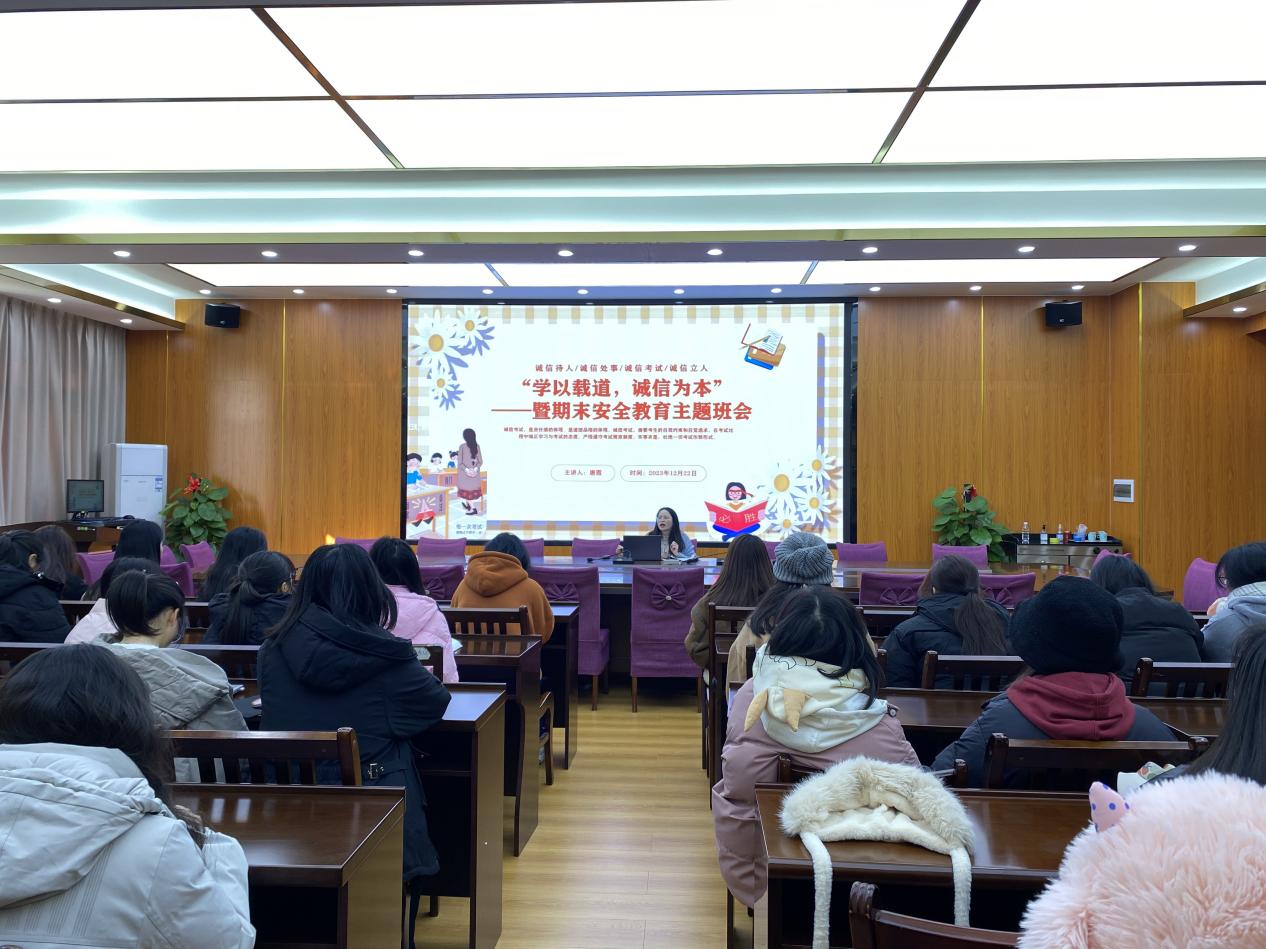 为加强诚信教育,规范考风考纪,同时提高学生安全意识,12月21日至27日,教育科学学院党委副书记李尚芳以及全体辅导员深入联系班级召开“学以载道,诚信为本”暨期末安全教育主题班会。