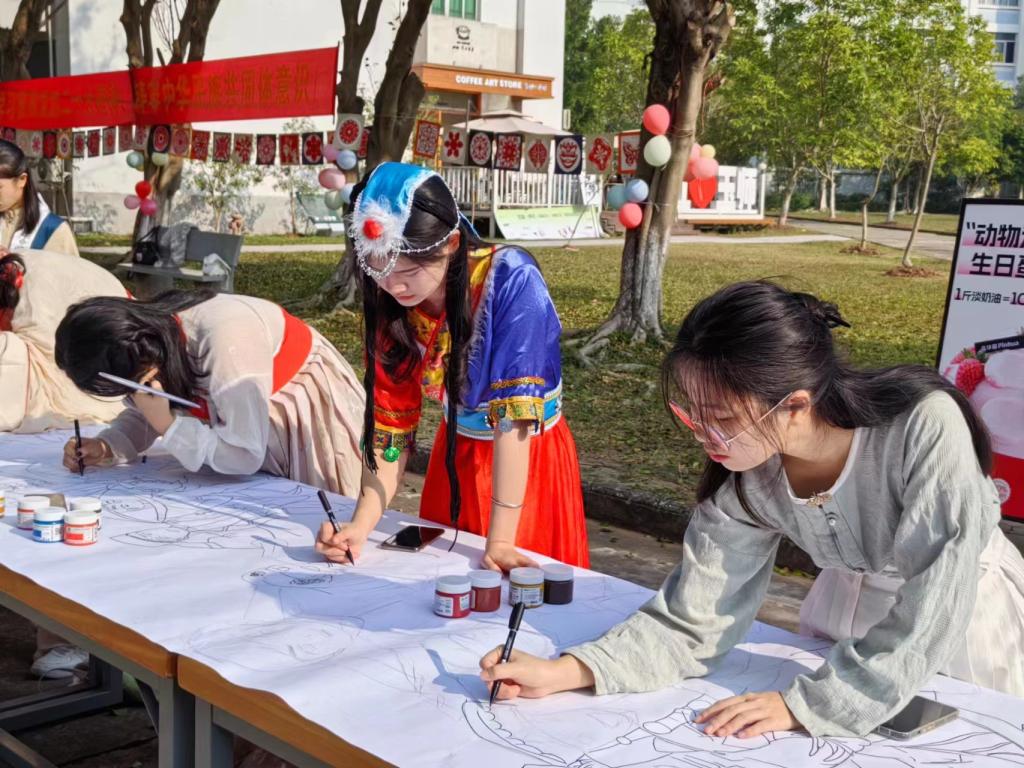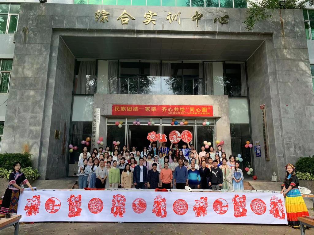 为全面贯彻落实习近平总书记关于加强和改进民族工作的重要论述,提升学生美育实践能力和丰富校园节日文化艺术气氛,1月1日上午,由玉林师范学院工会主办,美术与设计学院承办,玉林市品华居食品有限公司协办的“民族团结一家亲 齐心共绘‘同心圆’”2024年迎新年主题活动于我校东校区综合实训中心开展,学校工会负责人韦德贞,美术与设计学院党委书记黄培英,副院长邱冬梅以及我校师生员工及家属等共同参加活动。
