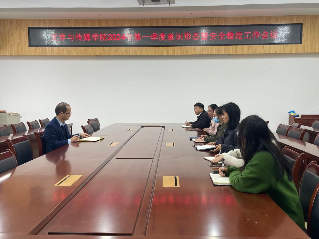1月8日上午,文学与传媒学院在东校区至善楼309会议室召开2024年第一季度意识形态暨安全稳定工作会议。学院党委书记冯健秋及全体辅导员参加会议。